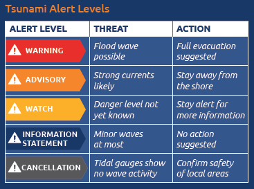 / Tsunami Alert Level - Tsunami Senatorriviere, There are four levels of tsunami alerts: